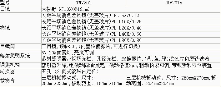 產(chǎn)品概述: 適用于對不透明物體的進(jìn)行顯微觀察。 功能特點(diǎn): 配置大移動(dòng)范圍的機(jī)械式載物臺(tái)、落射照明器、內(nèi)置偏光觀察裝置,具有圖像清晰、襯度好,,造型美觀,操作方便等特點(diǎn),,是金屬學(xué)、礦物學(xué)、精密工程學(xué)、電子學(xué)等研究的理想儀器。適用于學(xué)校、科研、工廠等部門使用。 技術(shù)參數(shù): ▲ 配置大視野目鏡和長距平場消色差物鏡(無蓋玻片),視場大而清晰。 ▲ 配置大移動(dòng)范圍的載物臺(tái),能快速和慢速移動(dòng)。 ▲ 粗微動(dòng)同軸調(diào)焦機(jī)構(gòu),粗動(dòng)松緊可調(diào),,帶鎖緊和限位裝置,微動(dòng)格值:2μm。 ▲ 6V 20W鹵素?zé)?亮度可調(diào)。 ▲ 三目鏡筒,可自由切換正常觀察與偏光觀察,可進(jìn)行100%透光攝影。 基本配置:
